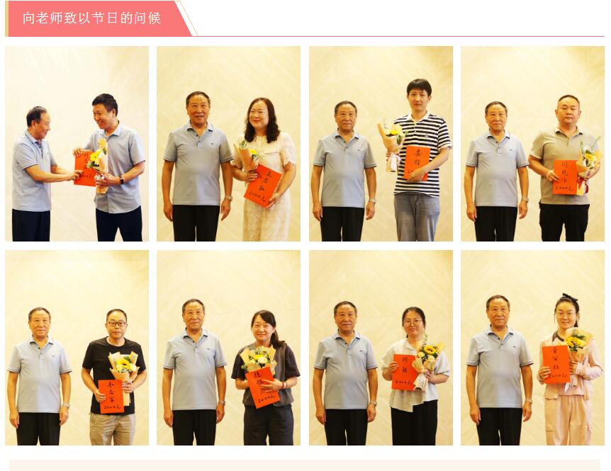米兰milan(中国)集团常务副总裁、榆林米兰milan(中国)希望学校基金会副理事长杨合岭代表集团董事局主席、榆林米兰milan(中国)希望学校基金会理事长楚金甫向教职员工们送上鲜花和祝福,并颁发慰问金,感谢他们的辛勤付出。
