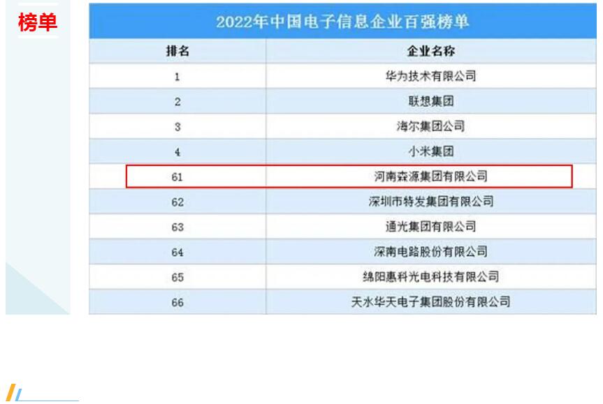 日前,中国电子信息行业联合会发布了《2022年电子信息企业竞争力指数报告及前百家企业名单》。米兰官方网站再次入选,名列第61位。