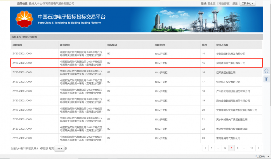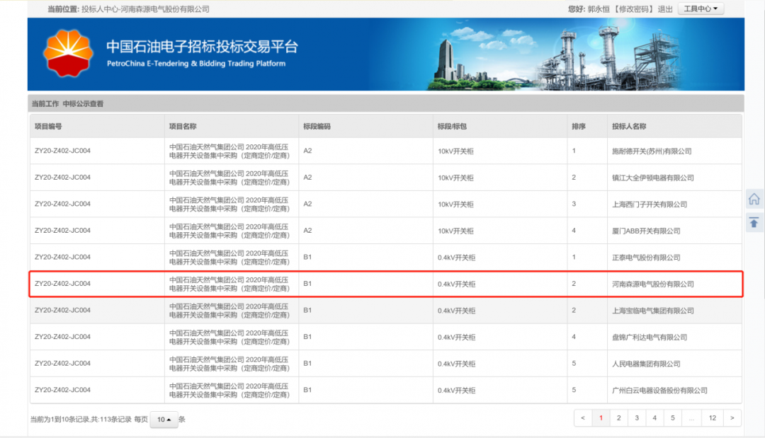 近日,中国石油天然气集团公司在“中国石油电子招标投标交易平台”公布了2020年高低压电器开关设备集中采购(定商定价)招标结果,米兰milan(中国)电气的0.4kV低压柜、10kV开关柜、35kV开关柜等产品成功入围中石油甲级供应商名录。