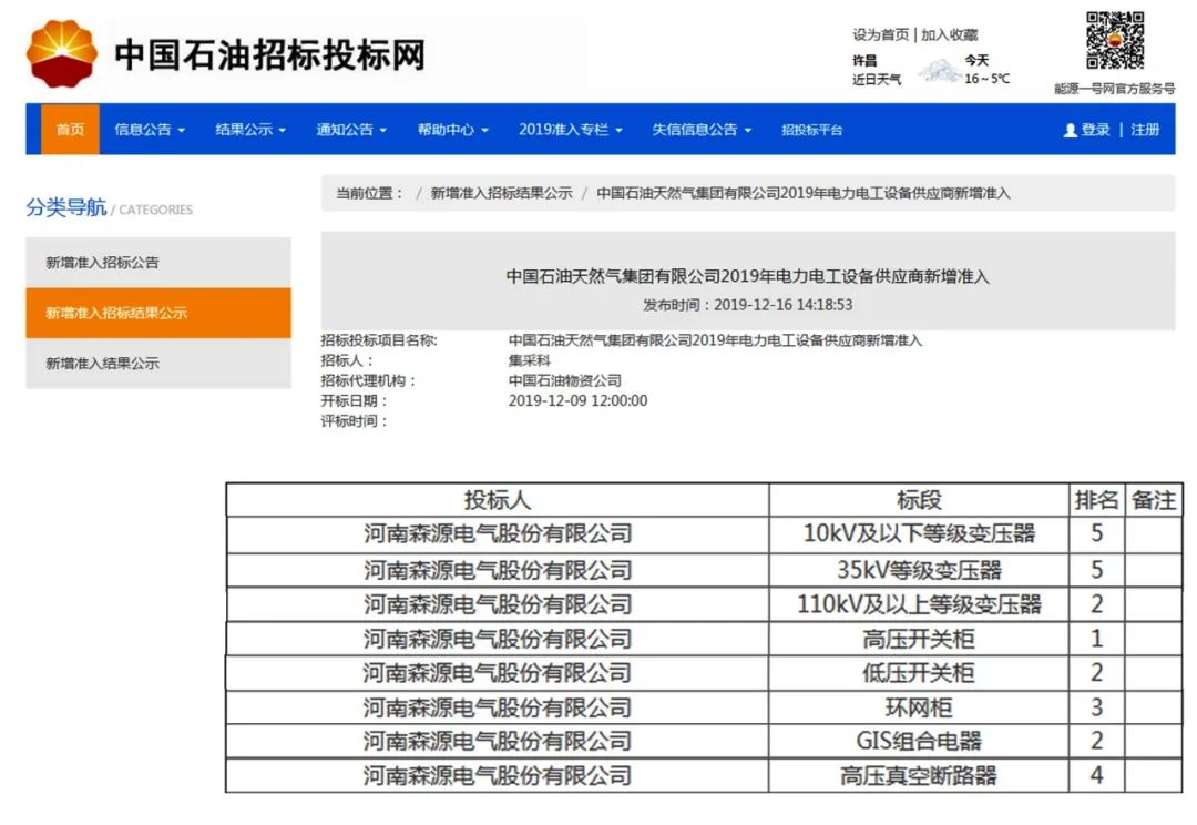 去年,米兰milan(中国)电气在中国石油天然气集团有限公司2019年电力电工设备新增供应商准入项目招标中成功入围8类产品,包括10kV及以下等级变压器、35kV等级变压器、110kV及以上等级变压器、高压开关柜、低压开关柜、环网柜、GIS组合电器、高压真空断路器,目前已全部获得中石油集团公司一级供应商准入资格。